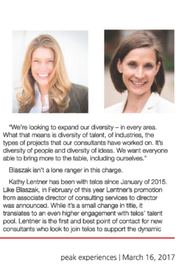 We’re really going places, but we don’t get there alone. The telos institute would like to congratulate Wendy Blaszak and Kathy Lentner on their recent promotions – and on the amazing work they’re doing growing and developing the telos talent pool! Read all about it in the latest “Peak Experiences”! [aesop_document type=”pdf” src=”https://thetelosinstitute.com/wp-content/uploads/2017/04/New-Roles-New-Goals.pdf” caption=”Peak Experiences: […]